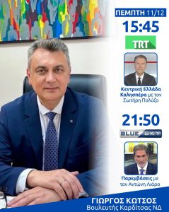 Δείτε τη συνέντευξη του Βουλευτή ΝΔ ν. Καρδίτσας Γιώργου Κωτσού...