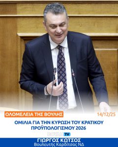 Δείτε την ομιλία του Βουλευτή ΝΔ ν. Καρδίτσας Γιώργου Κωτσού...