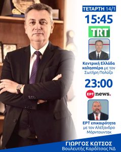 Δείτε τη συνέντευξη του Βουλευτή Καρδίτσας, Γιώργου Κωτσού, στο TRT,...