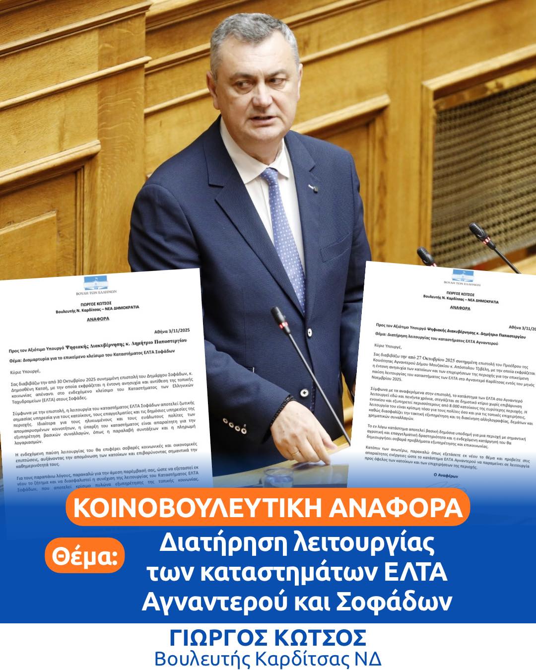 Αναφορά για διατήρηση λειτουργίας των καταστημάτων ΕΛΤΑ σε Αγναντερό και Σοφάδες 3/11/25 – Copy