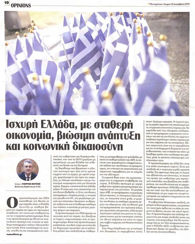 Άρθρο στο Μανιφέστο για τον προϋπολογισμό 2026 10/12/25