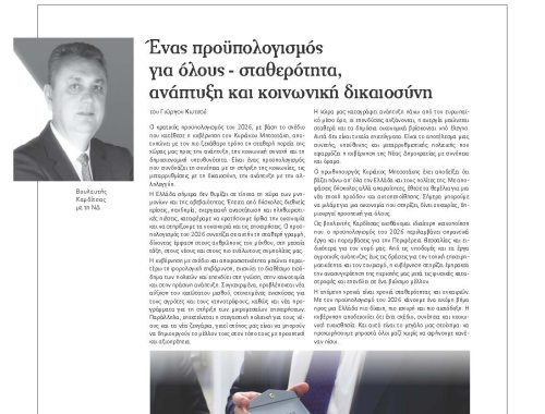 Άρθρο στο Μανιφέστο για τον προϋπολογισμό 2026 10/12/25