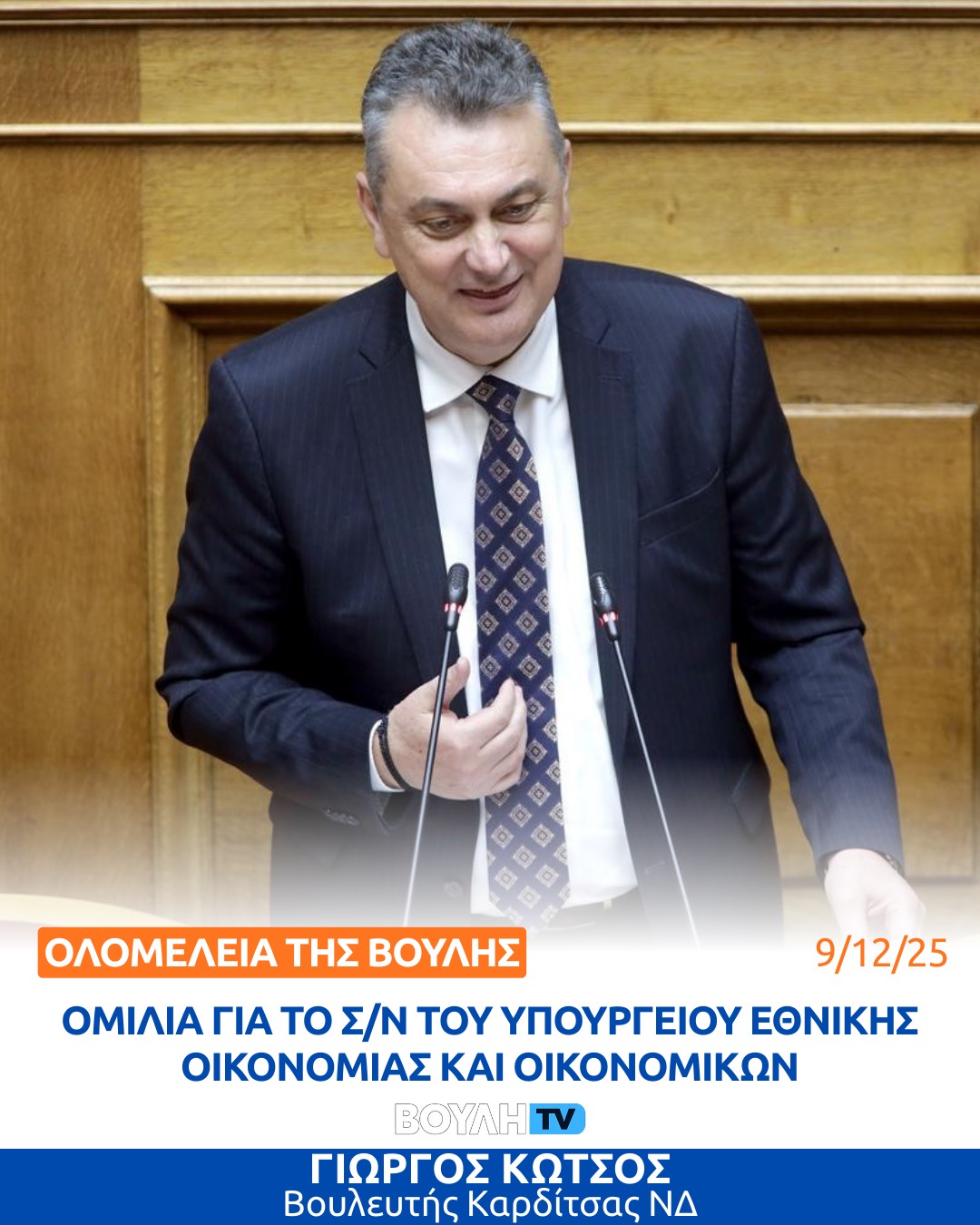 Δείτε την ομιλία του Βουλευτή ΝΔ ν. Καρδίτσας Γιώργου Κωτσού στη Βουλή των Ελλήνων για το Σ/Ν του Υπουργείου Εθνικής Οικονομίας και Οικονομικών, με τίτλο «Πλαίσιο για κοινωφελείς περιουσίες, ιδρύματα, σχολάζουσες κληρονομίες και δωρεές προς το Δημόσιο - Παρεμβάσεις σε Κώδικες Φορολογίας Εισοδήματος, Περιουσίας και Φ.Π.Α. - Σύσταση, αποστολή και αρμοδιότητες του Νομικού Προσώπου Ιδιωτικού Δικαίου με την επωνυμία «ΕΠΙΤΡΟΠΗ ΟΛΥΜΠΙΩΝ ΚΑΙ ΖΑΠΠΕΙΟΥ ΚΛΗΡΟΔΟΤΗΜΑΤΟΣ» - Διατάξεις αρμοδιότητας Γενικής Γραμματείας Χρηματοπιστωτικού Τομέα και Διαχείρισης Ιδιωτικού Χρέους και λοιπές διατάξεις».