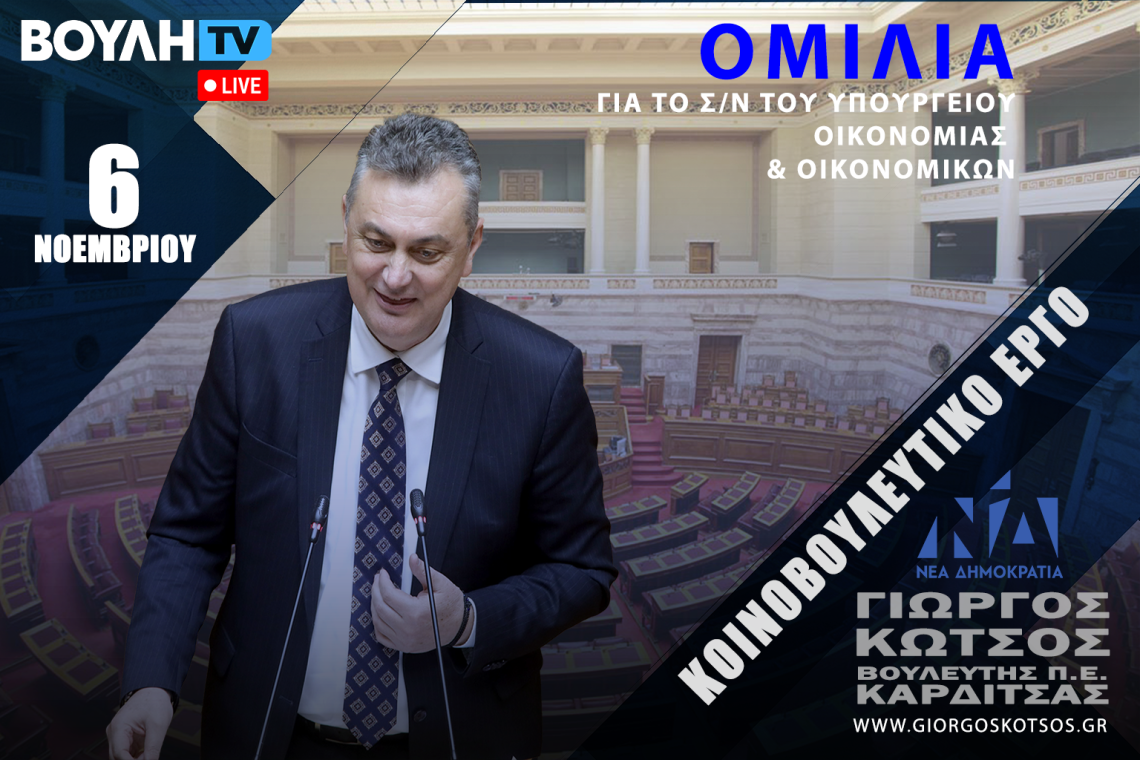 Δείτε την ομιλία του Βουλευτή ΝΔ ν. Καρδίτσας Γιώργου Κωτσού στη Βουλή των Ελλήνων για το σ/ν του Υπουργείου Εθνικής Οικονομίας και Οικονομικών: «Φορολογική μεταρρύθμιση για το δημογραφικό και τη μεσαία τάξη - Μέτρα στήριξης για την κοινωνία και την οικονομία».