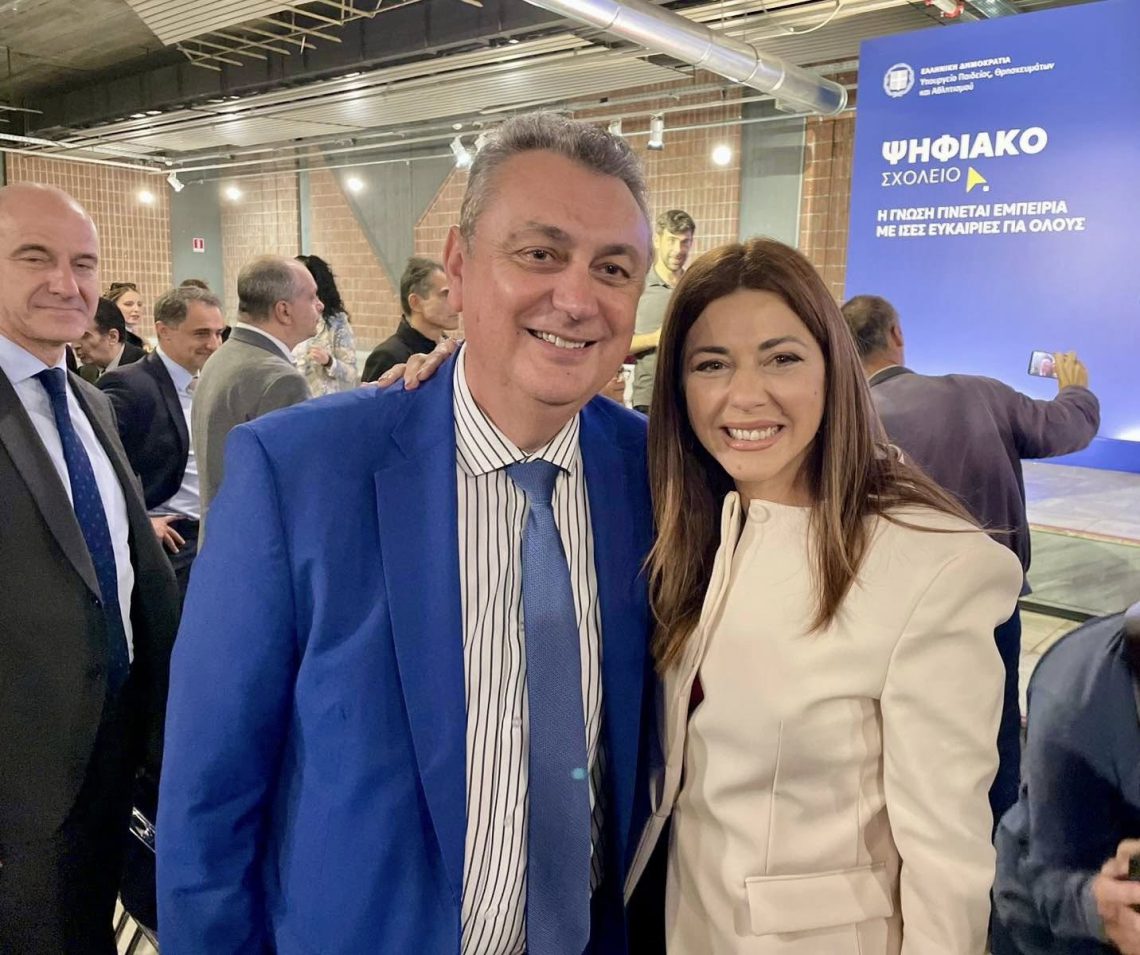 Στην εκδήλωση ΄΄Ψηφιακό Σχολείο η γνώση γίνεται εμπειρία με ίσες ευκαιρίες για όλους΄΄ με την Υπουργό Παιδείας, Σοφία Ζαχαράκη.