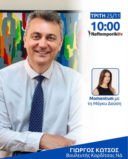 Δείτε τη συνέντευξη του Βουλευτή ΝΔ ν. Καρδίτσας Γιώργου Κωτσού στη Ναυτεμπορική τηλεόραση στην εκπομπή Momentum με τη Μάγκυ Δούση.