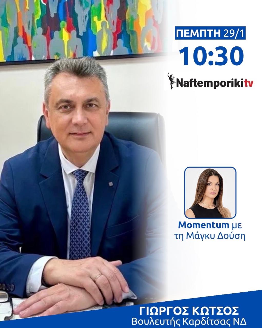Δείτε τη συνέντευξη του Βουλευτή Καρδίτσας, Γιώργου Κωτσού, στη Ναυτεμπόρικη TV, στην εκπομπή «Momentum» με την δημοσιογράφο Μάγκυ Δούση.