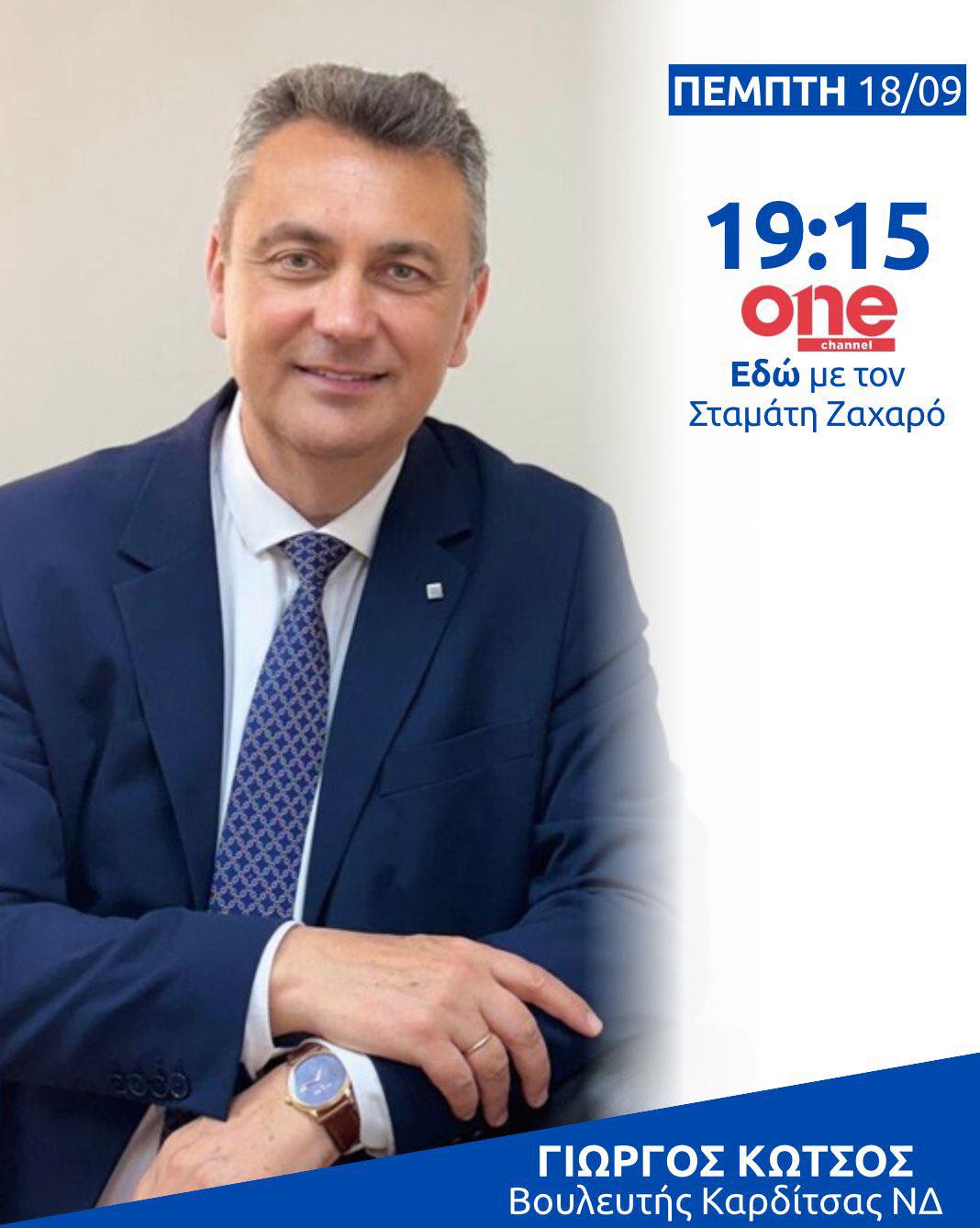 Ενημέρωση, Συνεντεύξεις Στον ONE TV με τον Σταμάτη Ζαχαρό 13/9/25 13 Σεπτεμβρίου 2025 Δείτε τη συνέντευξη του Βουλευτή ΝΔ ν. Καρδίτσας Γιώργου Κωτσού στο κανάλι του ΟΝΕ TV στην εκπομπή "ΕΔΩ" με τον Σταμάτη Ζαχαρό Προηγούμενο Στον Αγιασμό για τη Νέα Σχολική Χρονιά 2025-26 νεότερα Στην Αρχιερατική Λειτουργία για την επέτειο της Μικρασιατικής Καταστροφής 14/9/25