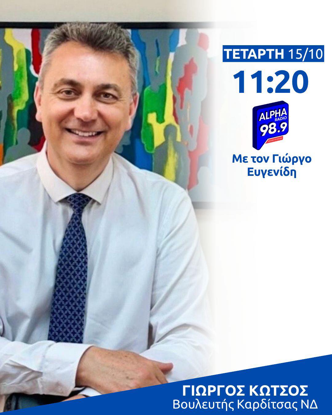 Gallery YouTube, Ενημέρωση, Κωτσός Γιώργος, Συνεντεύξεις Στον Alpha 989 με τον Γιώργο Ευγενίδη 15/10/25 15 Οκτωβρίου 2025 Ακούστε τη συνέντευξή του βουλευτή Καρδίτσας Γιώργου Κωτσού στη ραδιοφωνική εκπομπή του δημοσιογράφου Γιώργου Ευγενίδη στον alpha 98.9 Προηγούμενο Συνάντηση με τον Γ.Γ. του Υπουργείου Παιδείας κ Γιάννη Παπαδομαρκάκη 13/10/25 νεότερα Ομιλία για το Σ/Ν του Υπουργείου Εργασίας & Κοινωνικών Υποθέσεων 15/10/25