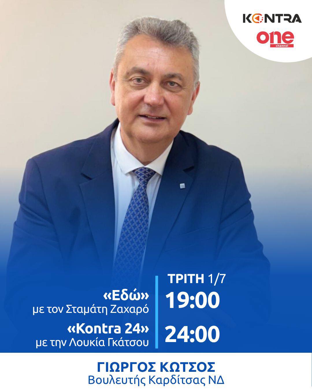 Δείτε τη συνέντευξη του Βουλευτή ΝΔ ν. Καρδίτσας Γιώργου Κωτσού στο κανάλι του ΟΝΕ TV στην εκπομπή "ΕΔΩ" με τον Σταμάτη Ζαχαρό